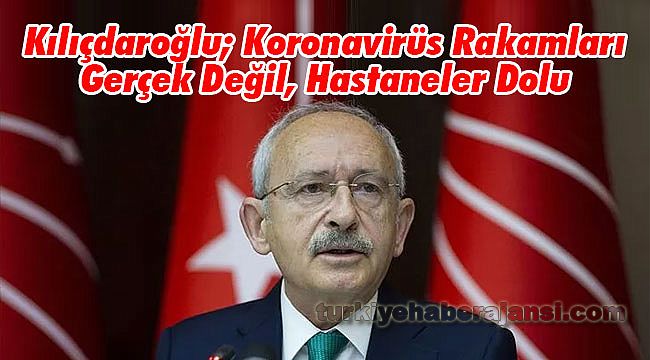 CHP Genel Başkanı Kemal Kılıçdaroğlu, koronavirüs verileriyle ilgili yaptığı açıklamada, rakamların daha yüksek olduğunu belirterek, "Bu rakamların gerçek olmadığını, çok daha fazla olduğunu ben de, siz de, doktorlar da biliyor." dedi.CHP Genel Başkanı Kemal Kılıçdaroğlu, Parti Meclisi toplantısı öncesi açılış konuşması yaptı.