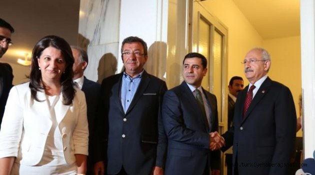 Görüşmenin ardından CHP Grup Başkanvekili Engin Altay açıklama yaptı.İşte Altay'ın Açıklamalarından Satır Başları:"Teröre karşı tüm siyasi partilerin ortak tavır alması gerektiğinin altını çizmek istiyoruz. PKK şunu bilmelidir ki elde silahla barış istenmez. PKK’nın tuttuğu silah barış iradesine yönelmiş bir silahtır. Bu silahla 7 Haziran’da ortaya çıkan barışa yönelmiş silahtır. Devletin üzerine düşen görevler vardır ancak kafaya silah dayanmışken barış sesini kimsenin duyması mümkün değildir. Barış için PKK’nın silahları bırakması lazım. Kimse umudu kaybetmesin Türkiye en kısa sürede barışa kavuşacaktır. Türkiye’yi kimse bölemeyecek. Perşembe’nin gelişi Çarşamba’dan bellidir. MHP’nin tutumu her şeyi gösteriyor. HDP’nin PKK’ya yönelik, Demirtaş’ın son günlerdeki iyi niyetli feryadını ve çalışmalarını olumlu buluyoruz. Koalisyondan ziyade Türkiye’de bugün barışa nasıl ulaşırız gündeme geldi."GÖRÜŞME 15..'DE BAŞLAMIŞTIKılıçdaroğlu-Demirtaş görüşmesi saat 15.00'da Kılıçdaroğlu'nun TBMM'deki makamında başladı. Demirtaş'ın talebi üzerine gerçekleştirilen görüşme öncesi CHP genel başkanı Kemal Kılıçdaroğlu ile CHP Grup Başkanvekilleri Levent Gök ve Engin Altay, HDP Eş Genel Başkanları Selahattin Demirtaş ve Figen Yüksekdağ'ı kapıda karşıladı.