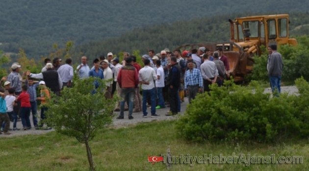 Manisa'da hayvanlarını otlattıkları devlete ait arazinin bir kişiye kiralanmasına tepki gösteren köylüler, iş makinelere engel oldu.