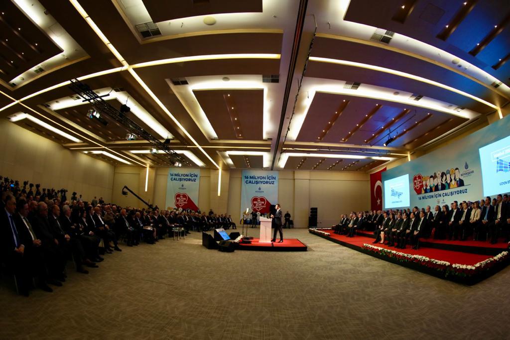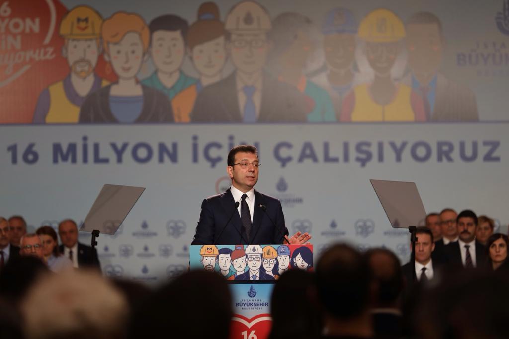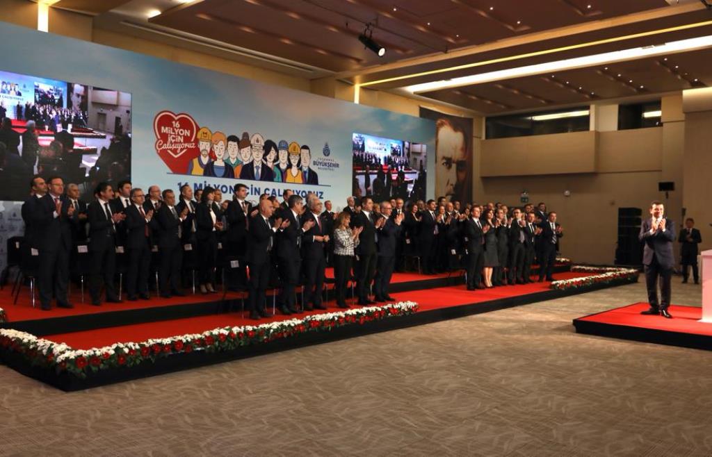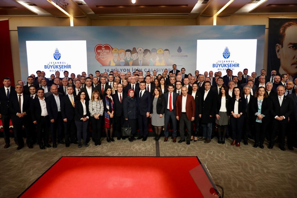 “CESUR DEMOKRASİ İÇİN ADIMLAR ATTIK”Meclis toplantılarının kendi dönemlerinde canlı yayınlanmaya başlandığını hatırlatan İmamoğlu, “Dünya tarihinde ilk kez, bir belediye meclisinin canlı yayınını 4 milyona yakın kişi izledi. Bu kadar ilgi ulusal parlamentoların yayınlarında bile görülmemiştir. Keza İBB tarihinde ilk kez ihaleleri online yayınlamaya da geçtiğimiz hafta itibariyle başlattık” dedi. Yerel demokrasi için, insanların yönetime katılabilmelerine olanak sağlayan mekanizmaların kurulması gerektiğini vurgulayan İmamoğlu, cesur demokrasi için adımlar attılarının altını çizdi. İmamoğlu, “Bizim için demokratik katılım çok ama çok önemli. Çünkü biz biliyoruz ki, bir kentte, bir ülkede demokrasi yoksa gelecek de olmaz. Bu nedenle, örneğin bir bürokratik süreç olan 5 yıllık Stratejik Plan Hazırlıkları’nı Ekim başından itibaren 16 milyon İstanbullunun katılımına açtık. 235 bin İstanbullu anketlerimize veya çalıştaylarımıza doğrudan katılarak görüş bildirdi. 20 bin kişi, şehrin çeşitli noktalarında kurduğumuz stantlarda post-itler ve anketlerle görüş bildirdi. Yakında ‘kullanıcı dostu’, yeni mobil aplikasyonlarımızla, demokratik katılımı nasıl geliştireceğimize de şahit olacaksınız” şeklinde konuştu.“İBB İLE İŞTİRAKLERİ, YENİ BİR BİLİŞİM SİSTEMİNE GEÇİYOR”İBB, İSKİ, İETT ve bütün iştiraklerin bilgi teknolojisini tek elden ve ortak bir masadan yönetmeye başladıklarının bilgisini paylaşan İmamoğlu, konuyla ilgli şunları söyledi:“Uygulama çöplüğüne dönen ve birbiriyle konuşamayan onlarca sistemden vatandaşın kolay ulaşacağı ve ihtiyaçlarını kolayca karşılayabileceğini bir bilişim sistemine geçiyoruz. Aynı işin farklı birimlerde tekrar tekrar yapılmasının önüne geçip, milyonlarca lira tasarruf sağlamaya başladık. Ayrıca akıllı şehrin olmazsa olmazı olan, araştırmacı, akademisyen ve startup’ların İstanbul’un sorunlarına çözüm bulacak yazılımlar geliştirmesine olanak sağlayacak açık veri platformunu da kurduk. Bu platformu ihtiyaç duyan herkesin kullanımına yakında açacağız. Özetle İstanbul’un yeni yönetimi olarak her alanda 16 milyonun mutluluğu için çalışıyoruz. Şeffaflığa, halka hesap verme prensibine, vicdana ve adalete dayalı bir yönetim anlayışıyla şehrimizi ayağa kaldırmak için büyük bir enerjiyle çalışıyoruz.”“16 MİLYON İSTANBULLU’NUN HAKKINI, KURDA KUŞA YEM ETTİRMEYİZ”Kendilerine karşı hayatın her alanında engelleme çabalarının sürdüğüne vurgu yapan İmamoğlu, sözlerini, “16 milyon İstanbullunun ortak mülkiyeti olan Haydarpaşa ve Sirkeci garlarını bile hokus pokusla 16 milyonun elinden almaya çalışıyorlar. Yeni kararlar alarak ve daha önce görülmemiş uygulamalar icad ederek bizim alanımıza müdahele etmeye çalışıyorlar. Lakayt bir süreç yönetmeye çalışıyorlar. 16 milyon İstanbullu’nun hakkını, kurda kuşa yem ettirmeyiz. Bizim tahsilatlarımızı yapan, 16 milyonun parasını kullanan kamu bankaları bize; yani 16 milyonun belediyesine kredi vermeye yanaşmıyor. Biz bütün bunlara rağmen çözüm üretmeye devam ediyoruz. Geçen hafta bütçemizi oybirliği ile İBB meclisinden geçirdik. İstanbul’da 2020 yılı içinde 10 milyarlık net yatırım yapacağız. Hemen her ay 10 civarında yeni yatırımımızı göreceksiniz. 2020’de kreşlerimiz hariç, 100’den fazla yatırımımız tamamlanmış olacak. Ama biz yatırımları yaparken bizden önceki yönetimler gibi adaletsiz davranmayacağız. Bu şehirde hiç kimse bizim partizan kararlarla yatırım yaptığımızı görmeyecek. İlçelerimizin bize oy verme oranlarına göre değil, tamamen nüfus yoğunluklarına, ihtiyaçlara ve önceliklere göre yatırım planlamasını yapıp uygulayacağız. Ve kararları hem 16 milyon Istanbulluyla ve hem de onların temsilcisi olan 39 ilçe belediye başkanımızla birlikte vereceğiz. Ne yaparlarsa yapsınlar, bize engel olamayacaklar. Biz 16 milyonun hakkını aramaktan asla vaz geçmeyeceğiz. Bize karşı yönelecek anti demokratik yol ve yöntemlerden asla ama asla yılmayacağız. 16 milyonun hakkı söz konusu olduğunda hiçbir şekilde geri adım atmayacağz. Asla susmayacağız. Atatürk Havalimanı mı? Tartışacağız. Kapatıldığı için bu milletin kaç milyarlarcası çöpe gitti, anlatacağız. Kanal İstanbul. Çizgi film yapmak çok kolay. Kanalın etrafına 60-70 katlı gökdelen dikmek de kolay. Bütün bunlara 16 milyon insan adına karşı çıkacağız. Herkesin de konuşmasını isteyeceğiz. 16 milyonluk vatansever İstanbullular; dünyaya örnek olmuş muhteşem insanlarımız bu şehrin asli sahibidir. Bunu kimse unutmasın. Kimse göz ardı etmesin. Sizlerin huzurunda tekrar ediyorum ki, biz, hiçbir biçimde ve hiçbir zaman mazerete sığınmayacağız. Bu kutsal şehrin sorunlarına ve 16 milyonun ihtiyaçlarına çözüm üstüne çözüm üreteceğiz. Ve mutlaka başaracağız. Çünkü biz, küçük bir çıkar grubu için değil, 16 milyon vatansever insan için çalışıyoruz. Bunun için gençliğimiz ve enerjimiz var. Bunun için heyecanımız da inancımız da yüksek. 6 ayda çok başarılı olduk. Çok daha başarılı olacağız. Dünyaya model olacağız…”