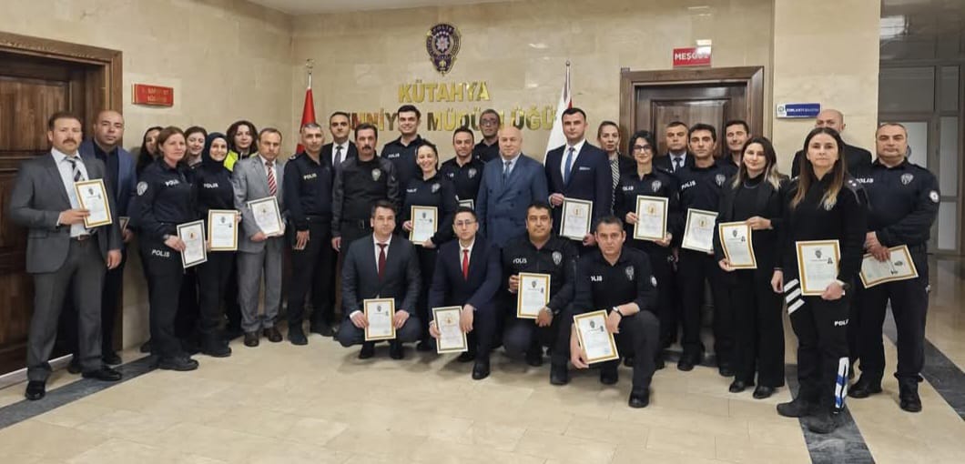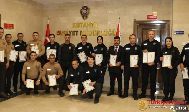 Kütahya İl Emniyet Müdürü Osman Elbir tarafından Müdürlük kadrosunun farklı birimlerinde görev yapan personellere özverili ve başarılı çalışmalarından dolayı " Başarı Belgesi " takdim edildi.