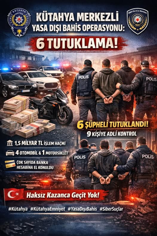 Kütahya İl Emniyet Müdürlüğü Siber Suçlarla Mücadele ekiplerinin yürüttüğü kapsamlı çalışmalar sonucu yasa dışı bahis oynatan şebeke çökertildi.Yapılan incelemelerde, suç işlemek amacıyla örgüt kurarak yasa dışı bahis oynatıldığı ve banka hesapları üzerinden gerçekleştirilen işlem hacminin 1,5 Milyar TL olduğu tespit edildi.