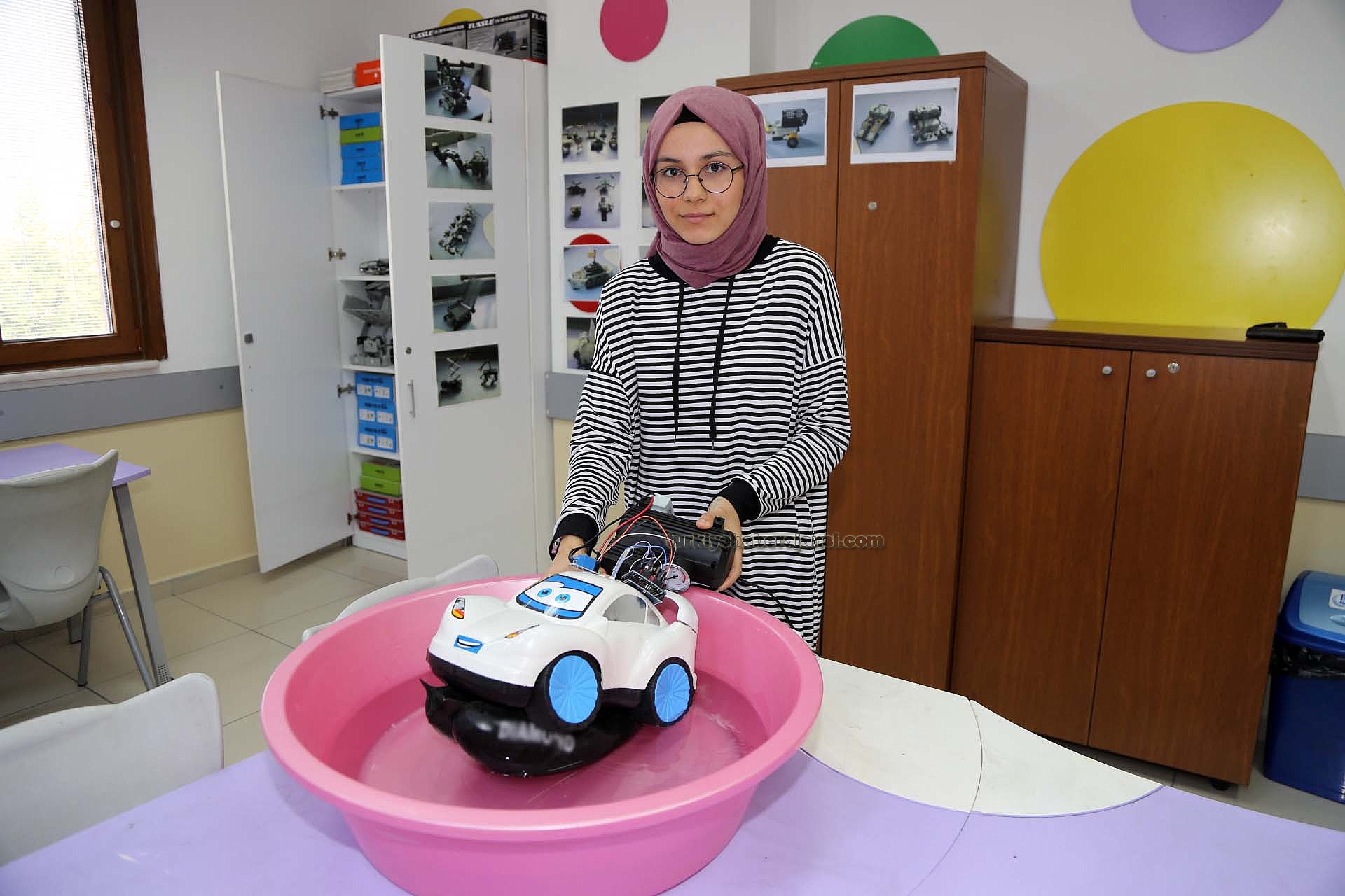 2 yaşında bir bebeğin hayatını kaybettiği kaza haberinden etkilenen Bağcılar Belediyesi Enderun Yetenekli Çocuklar Merkezi öğrencisi Nazlı Nur Karaboğa (15), denize uçan veya su birikintisinde mahsur kalan araçlarda can kaybı yaşanmaması için “Batmayan Araba” isimli bir projeye imza attı.