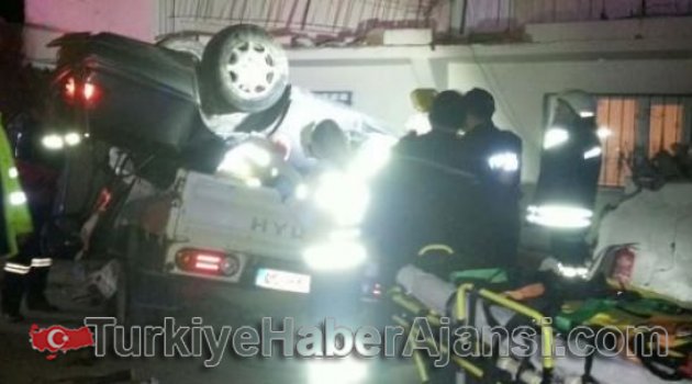 Manisa'da, hız nedeniyle kontrolden çıkması sonucu park halindeki çarptığı kamyonetin üzerine çıkarak ters dönen otomobildeki 3 kişi öldü.