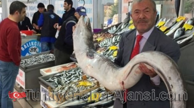Marmaralı balıkçılılar tarafından yakalanan 2 metre boyunda ve 38 kilo ağırlığındaki dev yılanbalığı, vatandaşların ilgi odağı oldu.