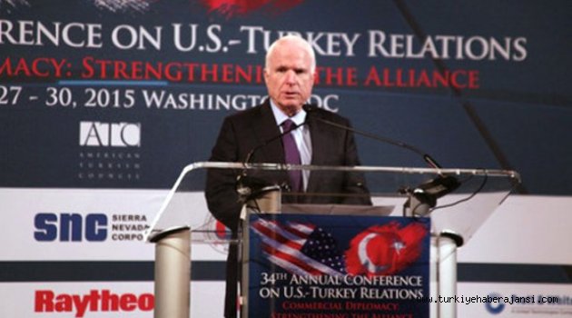 ABD Senatosu Silahlı Kuvvetler Komitesi Başkanı Senatör John McCain, ABD'nin başkenti Washington'da faaliyet gösteren Amerikan Türk Konseyi'nin (ATC) yıllık konferansında konuştu.Senatör John McCain, "Cumhurbaşkanı Recep Tayyip Erdoğan'ın gücünü pekiştirme çabalarına yönelik kaygısının sürdüğünü" dile getirdi.HUKUK VE DEMOKRASİ ÇAĞRISIObama yönetiminin Suriye politikasını eleştiren Cumhuriyetçi Parti Senatörü McCain, Türkiye'nin bölge için önemine değindi. Demokrasi ve hukukun üstünlüğünün korunması çağrısı yaptı."ERDOĞAN HAKKINDA ENDİŞELERİM SÜRÜYOR"McCain, bir NATO üyesi ülke olarak Türkiye'nin bölgenin en önemli ülkesi olduğunu ve bölgesel güvenlik ve istikrarda önemli bir rol üstlendiğine dikkat çekti. NATO'nun sadece bir 'güvenlik birliği' değil aynı zamanda 'değerler topluluğu' olduğunu kaydeden McCain, bu değerleri demokrasi, bireysel özgürlük, insan hakları ve hukukun üstünlüğü şeklinde sıraladı. McCain, "Madem ki bizler arkadaşız. Arkadaşınız olarak size söylemeliyim ki, Cumhurbaşkanı Erdoğan'ın gücünü pekiştirme çabalarına yönelik endişelerim sürüyor. Bu çabalar çoğu zaman söz konusu değerlerin harcanmasına neden olur" şeklinde konuştu."AÇIK KAPI" SİYASETİNE ÖVGÜMcCain, Türkiye'nin Suriyeli mültecilere yönelik 'açık kapı' politikasını övdü. Türkiye'nin Suriye'deki çatışmalar başladığından bu yana 2 milyon kayıtlı, yaklaşık 1 milyon da kayıt dışı mülteciyi ülkesine kabul ettiğini kaydeden McCain, "Bazı ülkeler Suriyeli mültecilerin girişini kısıtladı. Türkiye yüksek maliyet ve yetersiz uluslararası desteğe rağmen cömert açık kapı politikasını sürdürdü. Bu misafirperverlik ve açıklık Türk halkının karakterinin kuvvetini ortaya koyuyor" ifadelerini kullandı.TAMPON BÖLGE AÇIKLAMASIObama yönetiminin Suriye politikasını eleştiren McCain, Suriye'de bir tampon bölge kurulması gerektiğini, IŞİD ve Esed rejimi ile mücadele edilmesini sağlayacak daha akılcı bir eğit-donat programına ihtiyaç olduğunu sözlerine ekledi.