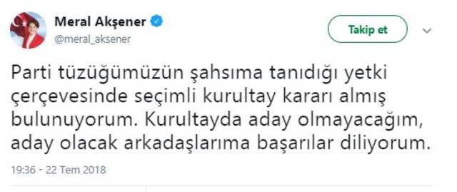 İYİ Parti'nin Afyonkarahisar'da gerçekleştirdiği çalıştayın son gününde, yaşanan gerginliğin ardından olağanüstü kongre kararı alındı. Genel Başkan Meral Akşener yeniden aday olmayacağını açıkladı.MERAL AKŞENER: KURULTAYDA ADAY OLMAYACAĞIMMeral Akşener, sosyal medya hesabından yaptığı açıklamada "Parti tüzüğümüzün şahsıma tanıdığı yetki çerçevesinde seçimli kurultay kararı almış bulunuyorum. Kurultayda aday olmayacağım, aday olacak arkadaşlarıma başarılar diliyorum" dedi.