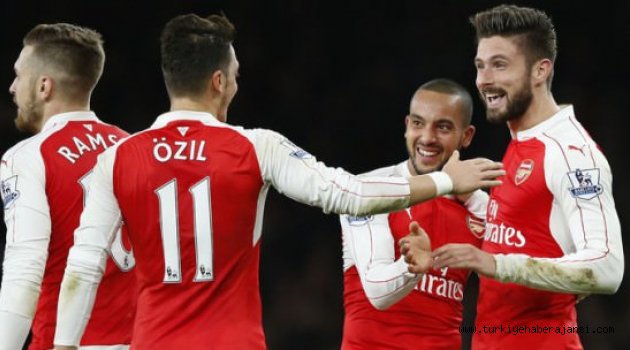 Premier Lig'de haftanın maçında Arsenal, Manchester City'e şans tanımadı, Mesut Özil'in yaptığı asistlerle yıldızlaştı.İngiltere Premeier Ligi'nde 17. haftanın kapanış maçında Arsenal, Manchester City'i 2-1 mağlup ederek zirve yolunda kritik bir galibiyet elde etti.Orta saha mücadelesi şeklinde geçen karşılaşmada perdeyi 33. dakikada enfes bir golle Walcott açtı. İlk yarı bitmeden sahneye çıkan Olivier Giroud farkı ikiye çıkardı. Her iki golün mimarı olan Mesut Özil asist sayısını 15'e çıkardı. 82. dakikada Yaya Toure'nin harika golüyle City ümitlense de kalan dakikalarda başka gol olmadı ve Arsenal dev maçı 2-1 kazandı.Bu galibiyetle Arsenal 36 puana çıkarken, Manchester City ise 33 puanda kaldı.
