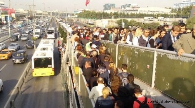 Metrobüse binmeye çalışan yolcular, üst geçite kadar uzun kuyruklar oluşturdu.Haftanın ilk iş gününde E-5 Karayolu üzerinde trafik yoğunluğu yaşanırken, metrobüs duraklarında ise yolcu kuyruğu oluştu. Sabahın erken saatlerinde işe gitmek için metrobüse binmek isteyen vatandaşlar duraklarda yoğunluğa neden oldu.Yenibosna Metrobüs Durağı’nda metrobüse binmek isteyen vatandaşlar, üst geçit ve merdivenlerde metrelerce kuyruk oluşturdu. Metrobüse binmek isteyen vatandaşlar dakikalarca beklerken, oluşan yoğunluk nedeniyle metrobüsten inen vatandaşlar da duraktan çıkmakta güçlük çekti.