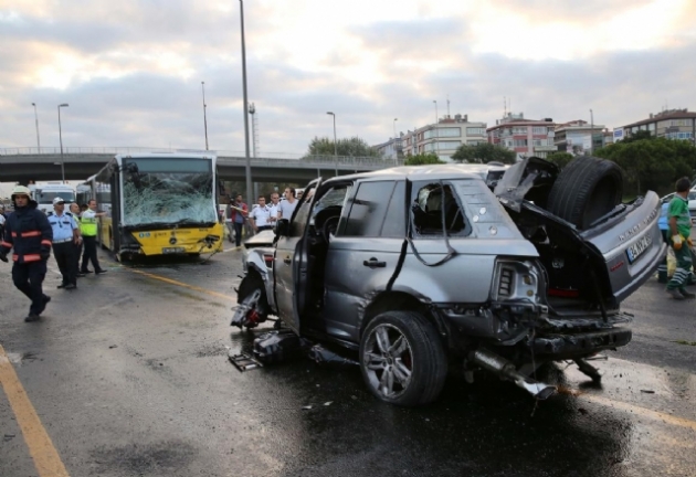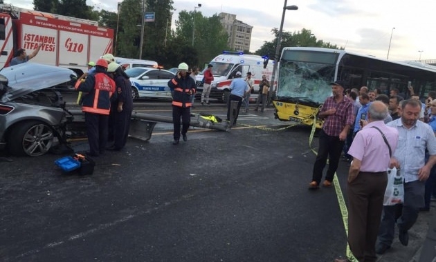 İstanbul D-100 karayolu Bakırköy'de aşırı süratli lüks cip, bariyerleri parçaladıktan sonra metrobüs yoluna girdi. Cip, hareket halindeki metrobüsle kafa kafaya çarpıştı. Feci kazada 1'i ağır 5 kişi yaralandı. Kazanın ardından olay yerine çok sayıda sağlık, polis ve itfaiye ekipleri sevk edildi. Yaralı yolcular ambulanslarla çevre hastanelere kaldırıldı.TRAFİK DURDUAvcılar'dan Bakırköy yönüne giden ve kazaya karışan 34 NYZ 89 plakalı cip yoldan kaldırılırken, Avcılar istikametine giden 34 TN 5828 plakalı metrobüsün de yoldan çekilmesi için çalışmalar sürüyor.Kaza nedeniyle D-100 Karayolu'nda trafik tamamen dururken, Cevizlibağ-Avcılar arasında her iki istikamette de metrobüs kuyrukları oluştu.
