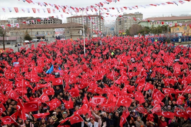 MHP Genel Başkanı Devlet Bahçeli, ilk referandum mitingini düzenlediği Elazığ'da, 15 Temmuz darbesinin bir 'Haçlı Operasyonu' olduğunu belirterek, "Biliniz ki 16 Nisan'da Türkiye'de sistem değişecek, Avrupa'da ise tahtlar sallanıp rejim değişikliklerinin ilk kıvılcımı çakılacaktır" dedi."20 TEMMUZ 2015'TEN BU YANA ŞEHİT SAYIMIZ BİN 137'DİR"Türkiye'nin kuşatma altında olduğunu savunan Bahçeli, "Ancak bugün kardeşliğimizi kıskananlar çok sayıdadır. Elazığlı'nın kaynaşma ve kucaklaşmasını çekemeyenler kara kampanya peşindedir. Türk ve Türkiye düşmanları devrededir. Karşımızda çok çetin bir oyun sahnededir. Bu oyun acımasız, vahşi ve ahlaksızdır. Küresel komplonun hedefinde Türk milleti vardır. Bu nedenle terör örgütleri kışkırtılmaktadır. Bu nedenle tehditler yoğunlaşıp derinleşmektedir. Türkiye kuşatma altındadır. Yıkım müteahhitleri, sanal sorun mucitleri taarruzdadır. Bin yıllık kardeşliğimizden rahatsız olan mihraklar içimizde ve çevremizde kanlı nöbettedir. Dikkat ediniz, 20 Temmuz 2015'den bu tarafa vatan ve millet uğruna toprağa düşen şehit sayımız bin 137'dir. PKK saldırmaktadır. Lice, Kulp, Genç üçgeninde günlerdir üstün bir mücadele sergilenirken, maalesef şehadet haberleri de alınmaktadır. Artık hainlerin kökü kazınmalı, inleri, saklandıkları delikleri yerle bir edilmelidir" diye konuştu."15 TEMMUZ BİR HAÇLI OPERASYONUYDU"IŞİD, PYD-YPG'nin küresel güçlerin himayesinde "4 parçalı Kürdistan" için tuzak kurduğunu belirten Bahçeli şöyle devam etti:"Bunun yanında İblisin yeryüzü garnizonu olan IŞİD, gözü dönmüşçesine kan dökmektedir. Kahraman Mehmetçiğin El Bab'ta 182 gün boyunca destan yazarak IŞİD'i söküp attığına millet ve Elazığ şahittir. PYD-YPG ise sınırlarımızın hemen dibinde, küresel güçlerin himayesiyle dört parçalı Kürdistan için tuzak kurmaktadır. Menbiç teröristlerin tasallutunda, Rakka tutsaktır. Bu cinayet çetelerinin en şerefsizi, en adisi, en sinsisi olan FETÖ, 15 Temmuz'da silaha sarılmıştır. FETÖ, son haçlı akınına komuta eden barbarlardan, Türkiye'yi işgal emrini alarak 15 Temmuz akşamı harekete geçmişti. Bunlar şerefli Türk askerinin kamuflajı içine saklandılar. Bunlar din ve diyanet istismarıyla batıla hizmet edip, küfrün yanında hizalandılar. Bunlar ki, yaratılmışların en aşağısı, en aşağılığı, en alçağı olarak milli hafızadaki kirli yerlerini aldılar. FETÖ, Anadolu'yu ele geçirmek maksadıyla yüzyıllardır pusuda bekleyen muhasım odakların, müstevli emellerin kızgın maşası, karanlık parçasıdır. Savaş uçaklarımızı gasp edip tepemizden bomba attılar. Helikopterlerimizi kaçırıp üzerimize kurşun yağdırdılar. Milli birliğimizi çözmek, milli bünyemizi çürütmek istediler. Askeri askere, askeri polise, polisi askere kırdırıp iç savaşa hizmet ettiler. Türkiye böylesi bir ihaneti hiç görmedi. Türk milleti böylesi bir zillete hiç düşmedi. Hiç kuşkunuz olmasın, 15 Temmuz bir Haçlı operasyonuydu. Planlaması ise Pensilvanya'daki hoca kılıklı hain ve arkasından itekleyip kumanda eden güçler tarafından yapılmıştı. Cüzdanlarına bir dolar koyup ByLockla haberleşen, himmet kuyruğuna girip aziz milletimizin kuyusunu kazmaya yeltenen şerefsizlere Türk milleti boyun eğmedi. Tankın önüne millet iradesi sere serpe yattı. 248 şehit vermek pahasına, masum kardeşlerimiz kurşunların karşısına inançla çıktı. Darbe teşebbüsüne 80 milyon direndi. FETÖ şiddeti sürerken, IŞİD, PYD-PKK sınırlarımızdan içeri sızıp işgali tamamlamak için fırsat kolluyorlardı." "16 NİSAN'DA AVRUPA'DA REJİM DEĞİŞİKLİKLERİNİN İLK KIVILCIMI ÇAKILACAK"Almanya ve Hollanda ile yaşanan diplomatik krize de değinen MHP Genel Başkanı Devlet Bahçeli, 16 Nisan'da Türkiye'de sistemin değişeceğini, Avrupa'da ise tahtların sallanacağını, rejim değişkliklerinin il kıvılcımının çakacağını söyledi. Bahçeli, şöyle konuştu:"İşte görüyorsunuz, Hollanda, Almanya ve diğer Avrupa ülkelerinin yaptıklarını. Hollanda 16 Nisan referandumundan korktu, cephe aldı. Türk milletinin iradesiyle sistem değişikliği yapmasından rahatsız olan ırkçı, Türk ve İslam karşıtı blok, olmadık tahammülsüzlükler gösterdi. Dışişleri Bakanımızın uçuş iznini iptal ettiler. Aile ve Sosyal Politikalar Bakanı bir hanım kardeşimizi zor ve cebir kullanarak aracına hapsettiler, ardından ülkeden çıkardılar. Hollanda yönetimi, bu ülkede hayat ve varlık mücadelesi veren vatandaşlarımızın üzerine atlarını sürdü, itlerini saldı. Biliniz ki, 16 Nisan'da Türkiye'de sistem değişecek, Avrupa'da ise tahtlar sallanıp rejim değişikliklerinin ilk kıvılcımı çakılacaktır. Bu yüzden monarşik yönetimler huzursuz ve sancılıdır. Hükümetler şaşkın ve şuursuzdur. Avrupa'nın demokratikleşmesi, insan hak ve özgürlüklerine saygı duymayı öğrenmesi yakındır, 16 Nisan'dan sonra kaçınılmaz bir şekilde gündeme gelecektir. Hollanda'da yapılan seçimler ırkçı ve Türkiye düşmanlarının yüzlerini kızartmış, okkalı bir ders vermiştir. İnanıyorum ki, yürüyüşümüzün önüne taş koymak isteyenler 16 Nisan'da kaybedecektir. Yerli, milli ve ahlaki bir uzlaşmayla; üstelik tamamıyla iç dinamiklerle temellenmiş sistem değişikliğini hazmedemeyenler dağılacaklardır. 16 Nisan'da Türkiye kazanacaktır. 16 Nisan'da Türk milleti onun bunun ağzına bakmayarak, muhteşem iradesiyle geleceğini şekillendirecektir."UYKULARI KAÇACAKMeydanda toplananlardan, sık sık referandum için "Evet" sözünü alarak, "Bu evetler, hayırcı kafilenin içindeki FETÖ, PKK, PYD, DHKP-C, Perinçek lobisi ve Türk doşmanlarını tir tir titretecektir" diyen Bahçeli, sözlerini şöyle sürdürdü:"Bu evetler, daha Anayasa'da ne