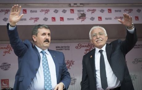 Kamalak ve eski Büyük Birlik Partisi (BBP) Genel Başkanı Mustafa Destici, Anadolu Meydanı'nda düzenlenen mitingde, birlikte partilileri selamladı.
