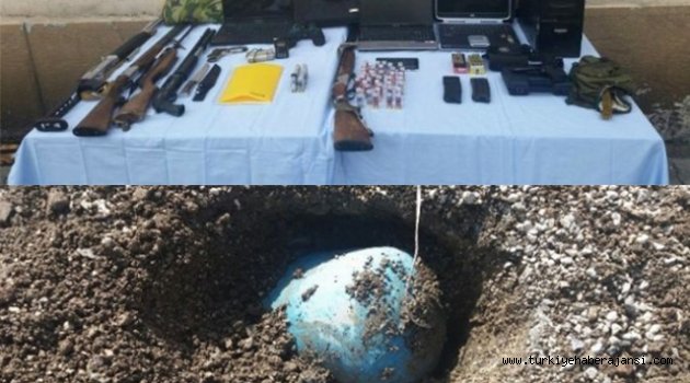 Teröristlerin kullandığı sığınak içerisinde, el yapımı patlayıcı madde yapımında kullanılan 3 adet 12 kiloluk tüp ile çok sayıda silah ve malzeme ele geçirdi.