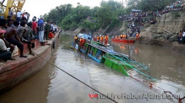 Myanmar'da yaşanan feribot kazasında 20 kişi hayatını kaybetti.Polis memuru Nay Lin Tun, feribotun Ayeyarwaddy deltasındaki Ngawun Nehri'nde akşam saatlerinde alabora olduğunu belirtti.Feribotta bulunan 40'tan fazla kişiden en az 20'sinin yaşamını yitirdiğini ifade eden Nay Lin Tun, emniyet ve itfaiye yetkililerinin arama kurtarma çalışmalarına devam ettiğini bildirdi.Nedeni henüz belirlenemeyen kazayla ilgili soruşturma başlatıldı.