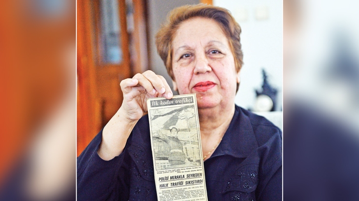 Fikriye Yavuz, 18 yaşındaki Türkiye'nin ilk kadın trafik polisi olarak İstanbul caddelerinde görev yaptı.
