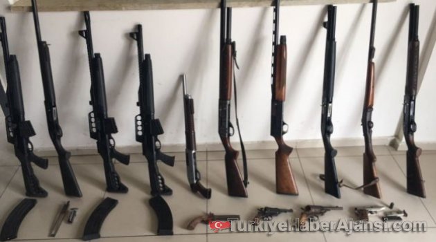 İzmir'in Ödemiş İlçe Emniyet Müdürlüğü Kaçakçılık ve Organize Suçlarla Mücadele Şubesi ekipleri, istihbari çalışmalar sonucu 41 yaşındaki E.M.K'nın çok sayıda silah sakladığı bilgisi üzerine harekete geçti.Ekipler, şüpheliye ait Ödemiş ve Tire ilçelerinde 5 adrese operasyon düzenledi. Operasyonda, Tire'deki bir otelin bodrumunda 3 tabanca, 10 av tüfeği ve 1 gaz tabancası ele geçirildi. Gözaltına alınan zanlı sorgulanmak üzere emniyete götürüldü.