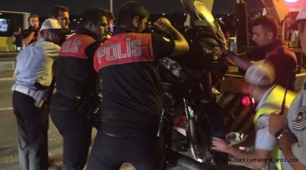 Edinilen bilgiye göre, Boğaziçi Köprüsü Avrupa yönünde hareket eden "Yunuslar" olarak bilinen motosikletli asayiş polisleri, aynı yönde makas atarak ve kontrolsüzce seyreden 54 B 5551 plakalı kadın sürücü Ş.Ş.'nin kullandığı lüks spor otomobile çarptı.Kaza sonucu polis memurları Mustafa Aksoy ve Mustafa Yıldırım motosikletten düşerek yaralandı. Polis memurları sağlık ekiplerince yapılan müdahalenin ardından Haydarpaşa Eğitim ve Araştırma Hastanesine kaldırılarak tedavi altına alındı. Polis memurlarının hayati tehlikesi bulunmadığı bildirildi.Kazanın ardından kontrolsüzce bir süre ilerleyen otomobilin kadın sürücüsü gözaltına alındı. Sürücü, Beşiktaş Polis Merkezi'ne götürüldü.
