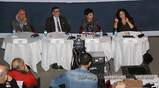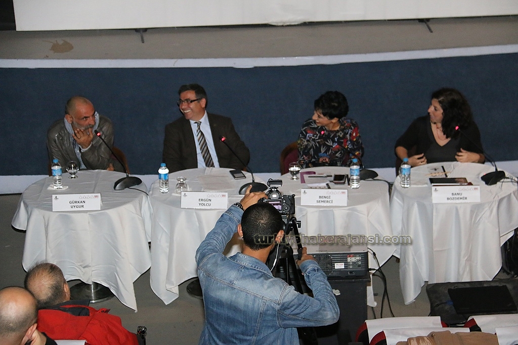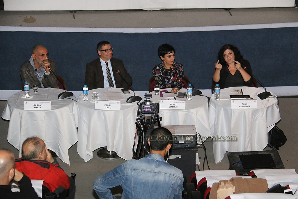 Şiddeti izlerken kendimizi engellemiyoruzilimsel olarak istatistik verilerine önem verdiklerini söyleyen Prof. Dr. Ergün Yolcu şiddetin sinemada gösterilmesi ile ilgili şunları söyledi: “2012 yılından bu yana ekranlardaki şiddet gösterimini inceledim. Erkeğin erkeğe olan şiddeti fragmanlara yoğun olarak yansıyor. Niye şiddeti kendimizi engellemeden izliyoruz? Sebepleri şunlar olabilir. Animasyonlarla şiddet özellikle fragmanlarda estetize ediliyor. Ana karakter şiddet uyguluyorsa mutlaka meşrulaştırılıyor. Kendimizi ana karakterlerin yerine koymuyoruz.Şiddet eğlence unsuru olarak pazarlanıyorŞiddeti eğlence unsuru olarak pazarlıyoruz. İçgüdüsel olarak şiddet olabilir insanda ama 3-4 yaşındaki çocuk buna maruz kalırsa ne olacak? Sinema algı açısından üç kat abartmak gerek der yönetmenler. Filmler ticarileşti. Haberlerde ana unsur şiddet. Ekranda sanki 18-20 saat şiddet algısı veriliyor. Duygusal açıdan ne kadar bilgiye sahibiz ki sinemada şiddeti bu noktada tartışıyoruz. Kısa film çeken öğrencilerimizin çoğunda ana tema karamsarlık.Artık facebooka gençler girmiyor çünkü annesi babası facebooku keşfetti. Gençler şimdi instagrama yöneldi. Çünkü her şey görsellikle anlatılabiliyor”Her yerde bombalar patlıyor, sinema bunu yansıtıyorSinema eleştirmenleri olarak konulara tür olarak bakmaya çalıştıklarını belirten Banu Bozdemir sinema dünyasından şu örnekleri verdi: “Kimse otomobilin park edilmesini değil patlarken izlemek ister diyor Tarantino. Haneke sıradan olmadan şiddeti göstermeden kullanan yönetmenlerden biri. Şiddeti yerli endüstri yeni yeni kullanmaya başladı. Cinsellik ve şiddet satar düşüncesi ile yapılıyor. Korku filmleri son yıllarda zirve yaptı. Kan ve şiddet mutlaka var. Cezalandırma mutlaka var. Dini unsurlu cin filmleri çok sayıda. Şiddet filmlerinin sembolü Hitchcock’un ‘Sapık’ filmindeki bıçak fotoğrafıdır. Her tarafımızda bombalar patlıyor. Sinemada bunu yansıtıyor. Daha estetize ederek sunuyor sinema. Gerçekliği gösterdiği için sinema böyle gelişime şaşırmıyorum. İnsanların içinde şiddet duygusu var. Belki sinema bunu sıradanlaştırıyor.”Batı sinemasında şiddet iyi gerekçelerle kapatılıyor‘Trafikte buraya geliyorum diye kavga edemedim çünkü şiddet konulu bir panele geliyordum’ diyerek espri ile konuşmaya başlayan Gürkan Uygur: “Kendi iç dünyamda şiddet yaşamıyorum. Ben de oynadığım rollerin reaksiyonu yok. Militarizm ve milliyetçilik şu an şiddeti destekliyor. Akademik olarak tespit yapamam ama tecrübelerimle şunu söyleyebilirim. Birebir örneklemeyi seven bir toplumuz. Kötü olanı seyrederken yapabilme özgürlüğünü düşünüyoruz toplum olarak. Bu yüzden fiziksel şiddet ön plana çıkıyor. Ataerkil toplumuz. Sert yaşamayı seviyoruz. Kendimizi şiddetle korumayı tercih ediyoruz. Adaletin yerine getirilmediğini düşündüğümüz için şiddet kullanarak çözmeyi tercih ediyoruz.Beşiktaş’ı savunur gibi savunuyorumGerçekliği de kaçırıyoruz. Şiddetin gerekçesi batıda iyi gerekçelerle kapatılıyor. Bilimden faydalanarak şiddeti kullanmama yönünde didaktik bir tavırla çalışıyorlar. Günümüz çocukları için şiddet bir oyun. Tabletinde, telefonunda bir oyun. Trafikte buraya geliyorum diye kavga edemedim. Dizi izleyicisi takım taraftarı gibi. Ben de bir şeyi savunurken Beşiktaş’ı savunur gibi savunuyorum” dedi.