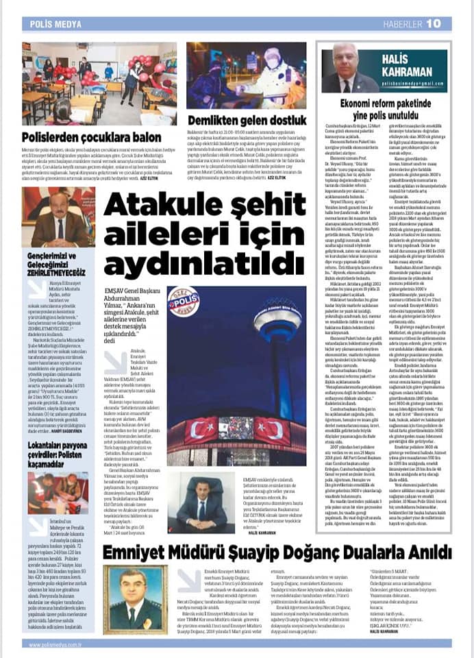Emekli Emniyet Mensubu olan Haber Merkezi Müdürü Halis Kahraman'ın ÖZEL HABER logolu haberlerinin yanısıra " Ekonomi reform paketinde yine polis unutuldu " başlıklı makalesi de bu sayıda yer aldı.