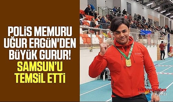 Samsun Emniyet Müdürlüğü Asayiş Yunus Timleri'nde görevli Polis Memuru Uğur Ergün, Türkiye Atletizm Şampiyonası +35 yaş grubu Gülle Atma branşında Türkiye şampiyonu olarak büyük gurur yaşattı.