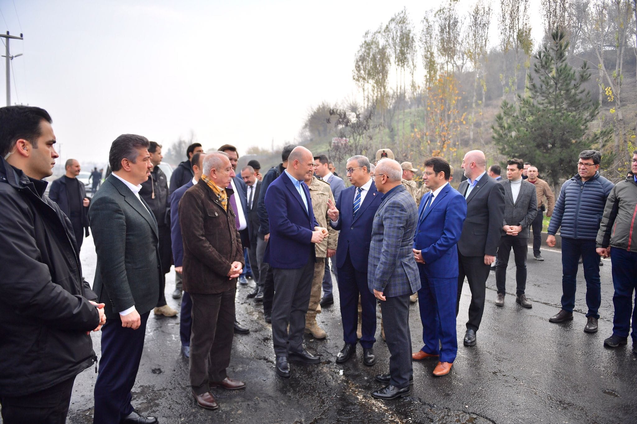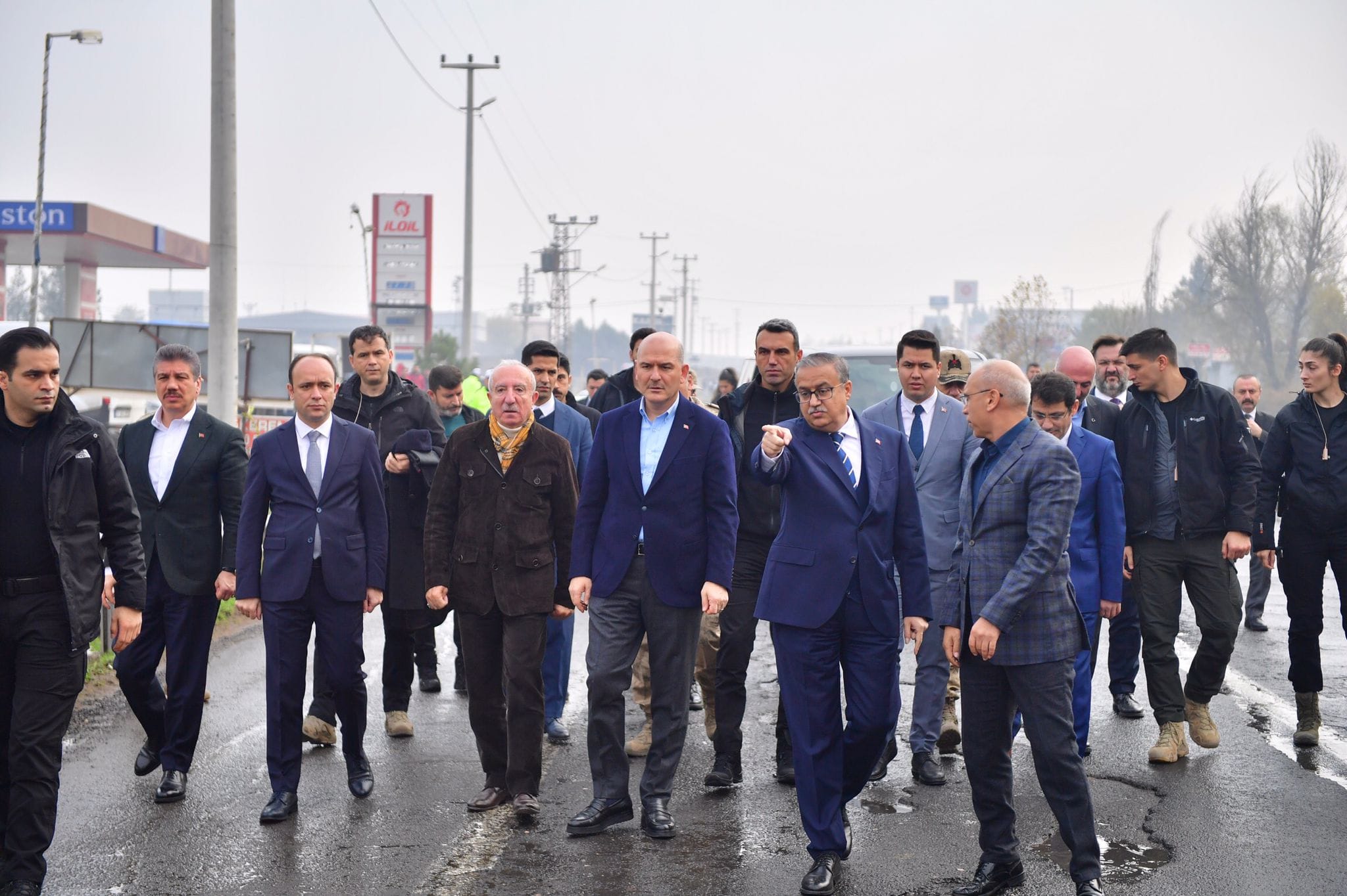 BAKAN SOYLU'DAN AÇIKLAMAİçişleri Bakanı Süleyman Soylu ve Diyarbakır Valisi ve Büyükşehir Belediye Başkanı Ali İhsan Su olay yerinde incelemelerde bulundu.
