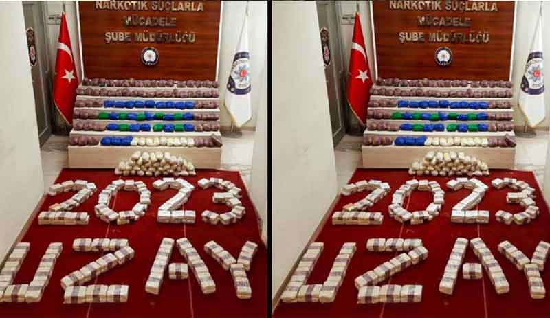 Van'da İl Emniyet Müdürlüğü Narkotik Suçlarla Mücadele Şube Müdürlüğü ekiplerince merkez İpekyolu ilçesinde ihbar üzerine plakası belirlenen araçta, narkotik köpeği Boby ile yapılan aramada, 287 paket toplam 194 kilo 600 gram eroin ele geçirildi. Konuyla ilgili şüpheli F.B.'nin yakalanması için çalışma başlatıldı. Yine merkez İpekyolu ilçesinde, polisin şüphe üzerine durdurduğu B.Y.'nin eşyalarında narkotik köpeği Boza ile yapılan detaylı aramada, 100 paket halinde toplam 51 kilo 500 gram eroin ele geçirildi.Polis ekipleri ele geçirdikleri eroin paketleriyle, '2023 Uzay' ile uyuşturucuyla mücadele uygulamasına dikkat çekerek 'Uyuma' yazdı.