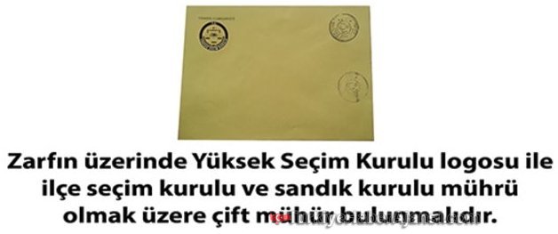 Zarfın içine birleşik oy pusulasının dışında başka bir şey (broşür, ilan, kağıt vs.) koymayınız.İSTANBUL'DA 33 BİN POLİS GÖREV YAPACAKİstanbul Emniyet Müdürlüğü 16 Nisan'da yapılacak halk oylamasında 39 ilçede 33 bin 582 polisin görev yapacağını açıkladı.Emniyetten yapılan yazılı açıklamada, "16 Nisan 2017 Pazar günü yapılacak olan Halk Oylaması ile ilgili olarak İlimiz genelinde polis sorumluluk bölgesinde oy kullanma işlemi 39 İlçe, bin 669 sandık alanı ve 25 bin 864 sandıkta yapılacaktır. Halk oylamasının güvenli ve düzenli bir şekilde yapılmasını sağlamak amacıyla oy pusulalarının oy verme işleminin yapılacağı sandık alanlarına sağlıklı bir şekilde getirilmesi, hiçbir baskı ve yönlendirme altında kalmadan seçmenlerin oylarını hür iradeleri ile kullanabilmeleri, sayım ve döküm işlemine başlanılması, kağıt ve belgelerin paketlenerek torbaya konulması, sayıma ilişkin torbaların oy toplama merkezlerine nakli ve teslimi süreçlerinde 33 bin 582 personelimiz görev alacaktır" denildi.