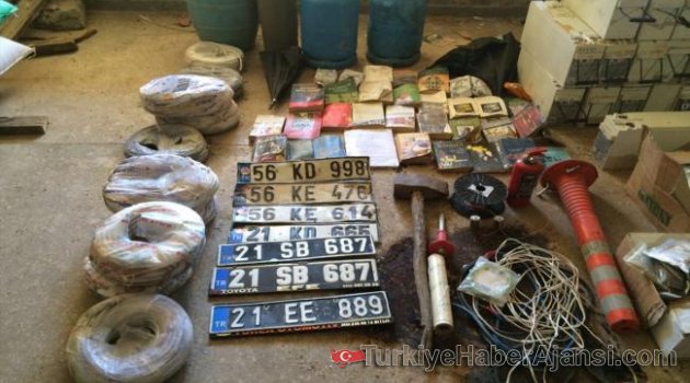 Diyarbakır'da terör örgütüne yönelik düzenlenen operasyonlarda, PKK deposu olduğu bildirilen bir evde resmi plakalar ve çok sayıda mühimmat ele geçirildi 17 kişi göz altına alındı.Genelkurmay Başkanlığının internet sitesinden, yapılan açıklamada PKK deposundan resmi plakalar çıktığı olayla bağlantılı olarak 17 kişinin göz altına alındığı bildirildi.Operasyonda, birer M-16 piyade tüfeği, dragunov keskin nişancı tüfeği, AK-47 kalaşnikof piyade tüfeği, tabanca, pompalı av tüfeği, roketatar, gece görüşü gözlüğü, pompalı av tüfeği şarjörü, yangın söndürme tüpü, rüzgar ölçer, büyük ve küçük telsiz, 5 roketatar mühimmatı, ikişer el dürbünü, büyük tüp, el yapımı patlayıcı malzemesi ve boş tabanca şarjörü, 9 dinamit lokumu, 7 TNT kalıbı, 47 AK-47 kalaşnikof piyade tüfeği fişeği, 60 M-16 piyade tüfeği fişeği, 270 kilogram amonyum nitrat, bin 130 metre kablo, 19 akü, 7 sırt çantası, 3'ü resmi 5 plaka ele geçirildi.Ayrıca terör örgütüne yardım ve yataklık yaptığı tespit edilen 17 kişi yakalandı.