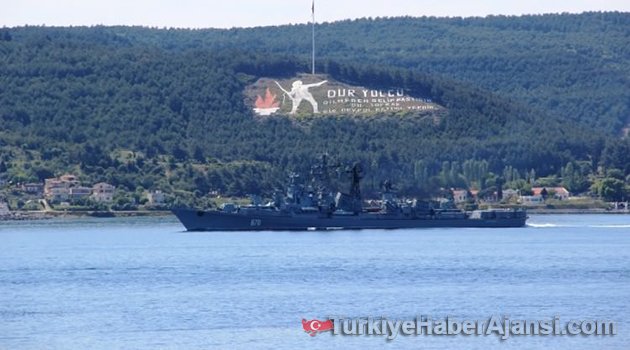 Rus donanmasına ait güdümlü füze destroyeri Çanakkale Boğazı'ndan geçti.