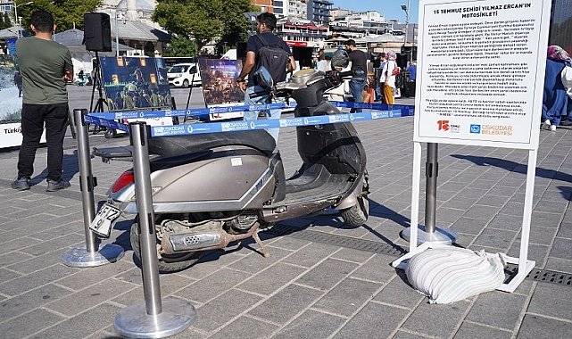 Şehit Yılmaz Ercan'ın 15 Temmuz gecesine damga vuran motosikleti Üsküdar'da sergileniyor.Darbe girişimi gecesi İstanbul'da motosikletiyle yaralıları taşırken şehit olan Yılmaz Ercan’ın motosikleti de 15 Temmuz Demokrasi ve Milli Birlik Günü Sergisi’nde sergileniyor.Üsküdar Belediyesi, 15 Temmuz Demokrasi ve Milli Birlik Günü'nde anlamlı bir sergiye ev sahipliği yapıyor.Darbe girişimi gecesinden fotoğrafların yanı sıra 15 Temmuz’da motosikletiyle yaralıları taşırken kurşunlanarak yaşamını yitiren Şehit Yılmaz Ercan’ın motosikletinin de yer aldığı 15 Temmuz Demokrasi ve Milli Birlik Günü Sergisi, 17 Temmuz’a kadar Üsküdar Sahili’nde açık olacak.Sergi açılışında konuşan Üsküdar Belediye Başkanı Hilmi Türkmen, darbeleri ve ihanetleri unutmamanın önemine dikkat çekerek “Unutursak bunlar tekrarlanabilir ve ne yazık ki tarihimizde bunların tekrarları vardır. 15 Temmuz’un unutulmaması, unutturulmaması adına hepimize seferberlik hali düşüyor” dedi.