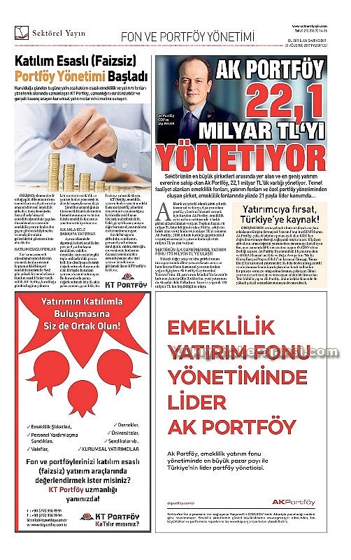'http://www.sektorelyayin.com'Sektörel Yayın Reklam Kuruluşu; tarafından hazırlanan bazı sektör yayınlarının isimleri şöyle:Fon ve Portföy Yönetimi