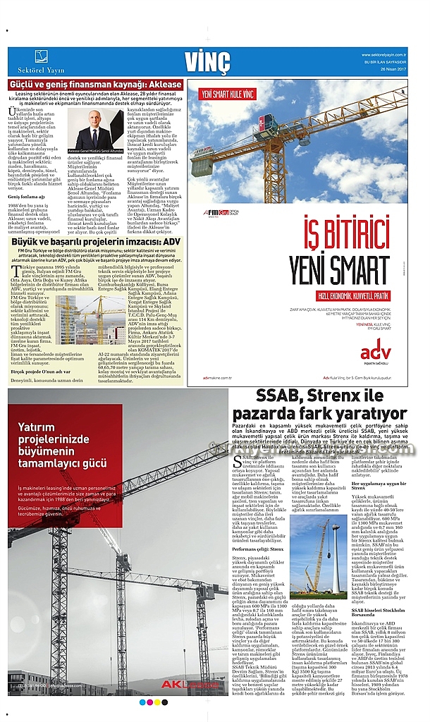 Sektörel alanlarda yayıncılık yapan “Sektörel Yayın Reklam Kuruluşu”, deneyimli kadrosuyla ve uygun maliyetli çözümleriyle sektörlerin sesi oluyor ve ulusal düzeyde tanıtıyor…Sektörel iletişim uzmanlarından oluşan ekibiyle hizmet veren “Sektörel Yayın Reklam Kuruluşu”, sektörleri irdeleyerek hedef kitlesine ulaştıracak çalışmalar yapıyor.“Sektörel Yayın Reklam Kuruluşu”, hizmet verdiği sektör sanayisi ile sınırlı dergi, gazete, internet sitesi, televizyon dijital dergi web TV gibi yayınlarla sektörü destekliyor ve birbirinden haberdar ediyor…“Sektörel Yayın Reklam Kuruluşu”; sektörü ilgilendiren çeşitli fuarlara Konferanslara katılarak dergilerini ve müşterilerini hedef kitleyle buluşturuyor. Sektörlerin Tanıtımını YapıyorTürkiye'deki çeşitli iş alanlarına ve bu alanlarda faaliyet gösteren kurum ve kuruluşlara, yazılı basın ve online gazete mecralarıyla, ulusal çapta tanıtım yapma imkanı sunan Sektörel Yayın Reklam Kuruluşu; bir reklam şirketi olarak ise sektörlerin tanıtımında önemli bir katkı sunuyor…Firmalar, Sektörel Yayın Reklam Kuruluşu’nun ilgili sektörün uzmanı olan ekipleri tarafından hazırlanan mecralarda çıkan haber ve makaleler sayesinde daha etkin ve daha doğru bilgiye ulaşıyor, daha öz ve net bilgi alıyor, yeni çıkan ürünler hakkında bilgi sahibi oluyor, rakipleri ve sektörün dünyadaki gelişimi hakkında bilgi edinmiş oluyor.Sektörlerin sesi oluyorTürkiye ekonomisine değer katan ve ülke gelişimine katkı sunan işletmeleri hedef kitleleriyle buluşturan Sektörel Yayın Reklam Kuruluşu, özel yayınlarıyla tanıtımını yaptığı sektörlerin sesi olurken, hem sektör içi iletişimi sağlıyor hem de nihai tüketiciye en güncel bilgileri ulaştırıyor.Değerler çerçevesinde çözüm üretiyorReklamcılık ve gazetecilik alanlarında deneyimli kadrosuyla, müşterilerin ihtiyaçlarına uygun, kurum kültürlerini gözeterek ve pazarlama iletişimi değerleri çerçevesinde çözümler üretien Sektörel Yayın Reklam Kuruluşu, çeşitli sektörlerden binlerce müşteriye, uygun maliyetli, geri dönüşü ve katma değeri yüksek mecralar sunuyor.Sektörel Yayın Reklam Kuruluşu, firmaları tanıtması dışında firmalara daha ekonomik şartlarda reklam ve haber yaparak sektörün - pazarın gelişmesinde de doğru bilgi üretilmesinde stratejik bir öneme sahip…Sektörel Marka Yayınlar…Sektörel Yayın Reklam Kuruluşu; sektörel derneklerle sıkı ilişki içerisindedir. Ulusal nitelikli sektörel yayınlar üretmektedir. Her sektördeki yayınları markadır. Yayınlar sektörü tam kapsamaktadır.Sektörel Yayın Reklam Kuruluşu; yayın yaptığı tüm sektörlerde deneyim sahibi uzman ekiplere sahiptir ve çok iyi muhabirleri, çok iyi grafik tasarımcıları sektörü tanıyan çok iyi bir satış ekibi bulunuyor.Sektörel Yayın Reklam Kuruluşu'nun basılı yayınları Türkiye genelinde en iyi dağıtım yapan kurye ve kargolarla taşınmakta, çok iyi matbaalarda basılmakta ve iyi bir tiraja sahiptir. Yayınların dağıtımları ismen, işletmelerde karar alıcılara ve sektör aktörlerine ulaştırılmaktadır… 'http://www.sektorelyayin.com.tr'