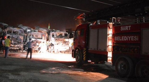 Siirt'te bir şantiyedeki 5 iş makinesi yüzü maskeli kişiler tarafından benzin dökülerek yakıldı.