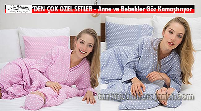Annelerle Bir Örnek Bebekler… Hem sabahlık hem de geceliklerle renk ve desen uyumu sağlayan bebek doğum seti, yeni annenin bebeğiyle ilk fotoğraflarında harika bir görünüm oluşturuyor. Bebeğinizin tenini tahriş edecek etiketleri olmayan yenidoğan bebek şapkası da sete dahil. Tulumun kol bölümleri, katlanarak bebeğinizin kendine zarar vermesini önleyecek bir eldiven haline geliyor. Tulumun çıt çıtsız lastikli alt bölümü, annelerin kolaylıkla bez değiştirmesine olanak tanıyor. Bu da özellikle geceleri annelerin işini oldukça kolaylaştırıyor.Şıklığı Tamamlayan Yastık Kılıfları… Sabahlık, gecelik ve bebek seti ile takım oluşturan yastık kılıfları da seti tamamlıyor. Böylece fotoğraflardaki şıklığınız da bütünlenmiş oluyor. Son derece kullanışlı olmak üzere dizayn edilen yastık kılıfları, zarf şeklindeki tasarımıyla yastıkların kaymasını önlüyor.B.U Maternity marka Alice, bella ve marina ürün setlerini, 'www.bumaternity.co' adresinden ya da anlaşmalı satış noktalarından 495.95 TL'lik lansman fiyatı ile satın alabilirsiniz.