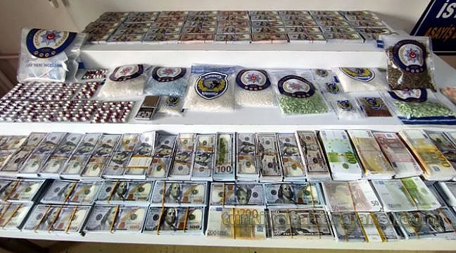 Şişli İlçe Emniyet Müdürlüğü gece kartalları ekipleri, dün gece devriye görevi yaptığı sırada durumundan şüphelendiği bir kişiyi durdurarak üst araması yaptı. Y.O. isimli kişinin yapılan üst aramasında bir miktar uyuşturucu madde ve sahte döviz ele geçirildi.Y.O uyuşturucu madde ve sahte döviz ile Feriköy Polis Merkezi'ne teslim edildi. Soruşturmayı derinleştiren ekipler, Y.O.'ya uyuşturucuyu ve parayı kimden ve nereden aldığını sordu. İsminin F.Ç. olarak bildiği bir kişiden aldığını söylemesi üzerine bu kişinin kaldığı yer belirlendi. Savcılıktan gerekli izinlerin alınmasından sonra F.Ç.'nin kaldığı otel odasına baskın yapıldı.Otel odasına yapılan operasyonda 2 bin 56 adet uyuşturucu hap, 1 kilo uyuşturucu madde, hassas terazi ve 190 deste halinde yaklaşık 16.5 milyon lira tutan sahte döviz ele geçirildi. Gözaltına alınan 1'i kadın 3 kişinin Şişli Asayiş Büro'daki işlemleri devam ediyor.