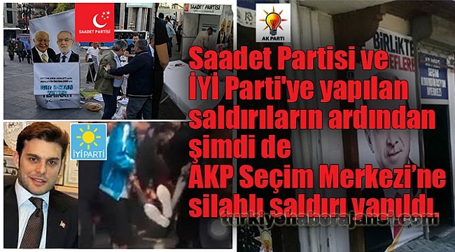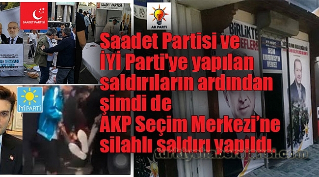 Saadet Partisi ve İYİ Parti'ye yapılan saldırıların ardından şimdi de Adalet ve Kalkınma Partisi Seçim Merkezi’ne silahlı saldırı yapıldı.