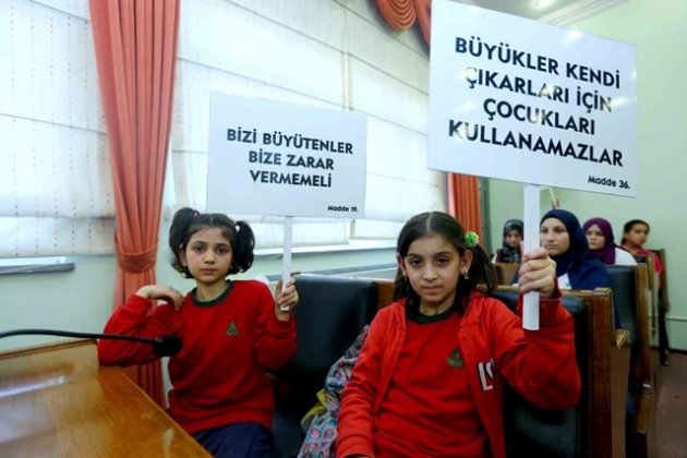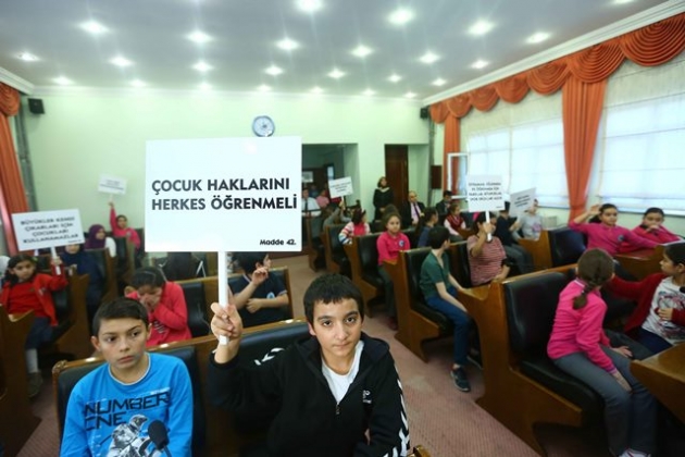 Toplantaya ilçede eğitim gören Suriyeli ilkokul öğrencileri ile Bağcılarlı öğrenciler de katıldı. Oturumda Suriyeli çocuklarla iyi arkadaş olunması istenirken, “Suriyeli kardeşlerimize zor günlerinde yardım eli uzatalım. Onlara kardeşlik duygusuyla yaklaşalım.” denildi. Ayrıca engelli çocukların haklarının da korunması gerektiği vurgulandı.Bağcılar Belediyesi Çocuk Meclisi bu ayki toplantısını 20 Kasım Dünya Çocuk Hakları Günü münasebetiyle Bağcılar Belediyesi Meclis Toplantı Salonu’nda gerçekleştirdi.Oturumda Çocuk Meclisi Başkanı Merve Akgeyik, başkan vekilleri Ezo İrem Keskin, Muhammet Taha Akgül ile meclis üyeleri Şule Beşinci ve Koray Emre Öz çocuk haklarının ihlali ve çocuk haklarının korunmasıyla gibi konuları konuştular.“OKULLARDA ÇOCUK HAKLARI DERSİ VERİLMELİ”Merve Akgeyik, Suriyeli öğrencilerin bir sorusu üzerine, “Dünya üzerinde birçok çocuk savaş ortasında veya açlık sınırında yaşıyor. Olumsuz durumun ortadan kaldırılması için Çocuk Hakları Sözleşmesi her devlet tarafından uygulanmalı. Her birey 18 yaşına kadar çocuk kabul edilir. Çocuk Hakları Sözleşmesi’ndeki yazılı olan hakların gözetilmesi gerekiyor. Devlet bu hakların uygulanmasına çaba gösterir. Anne ve baba olmak üzere çocuktan sorumlu olanlar çocukların yaşamını koruma zorundadır. Haklarımızı yeterince iyi bilmiyoruz, okullarda çocuk hakları dersi verilmeli. ”diye konuştu.SURİYELİ ÖĞRENCİ ESRA: “BAĞCILAR’DA MUTLUYUZ”Ülkesindeki iç savaştan kaçarak geldikleri Bağcılar’da yaşadıklarını anlatan 10 yaşındaki Suriyeli öğrenci Esra Arkavi de duygularını şöyle dile getirdi: “Bağcılar’da olmaktan mutluyuz. Okula gidebiliyoruz. Bize destek veriliyor. Bu imkânların sunulmasında yardımcı olan herkese teşekkür ediyoruz.” dedi. Toplantıyı izlemeye gelen Suriyeli öğrenci Ara Mustafa ise “Az da olsa bazı kişilerin bize ayırımcılık yapmamasını istiyoruz.” derken Nisa Nur Yılmaz adlı öğrenci de, Suriyeli çocuklara ayırım yapılmaması gerektiğini belirterek, “Biz, Suriyeli kardeşlerimizle barış içinde yaşamak istiyoruz. Onlar da iyi eğitim alsınlar istiyoruz. Biz onları seviyoruz.” dedi.“ENGELLİ VE SURİYELİ ÇOCUKLARI HORLAMAYALIM”Engelli çocukların haklarına daha çok riayet edilmesi gerektiğini vurgulayan Sevdanur Kılıç adlı öğrenci ise “Onları yargılamayalım ve dışlamayalım. Onlara daha çok yardımcı olalım.” şeklinde konuştu. Koray Emre Öz de Suriyeli çocukların incitilmemesi gerektiğini söyledi. Öz, “Lütfen onları horlamayalım. Yardımcı olalım.” diye konuştu. Toplantıda bir konuşma yapan Bağcılar Belediyesi Kültür ve Sosyal İşler Müdürü Niyazi Adıgüzel, İslamiyet’in çocukların haklarının korunmasına büyük önem verdiğini belirterek, “Dinimiz devlete, anne ve babalara çocukların haklarının korunmasını emrediyor.” dedi. Bağcılar Milli Eğitim Şube Müdürü Özkan Boyacı da Hz.Ali’nin, ‘çocukları yaşayacağı çağa göre yetiştirin’ sözüne atıf yaparak “Bu etkinlik de güzel bir etkinlik oldu. Belediyemiz bize böyle güzel programlarda her zaman ev sahipliği yapıyor. Kapalı yüzme havuzlarından, kültür merkezlerinden, kütüphanelerden, 8 D sinemadan faydalanın.” dedi.HATIRA FOTOĞRAFI ÇEKTİRDİLEREllerinde ‘çocuk haklarını öğretelim, beni ilgilendiren konularda benim de görüşüm alınsın, çocuklar onurlu ve saygın bireydir, bizi büyütenler bize zarar vermesin, sağlığım devletin güvenliği altındı’ yazılı pankart taşıyan öğrenciler, oturum sonrası birlikte hatıra fotoğrafı çektirdi.