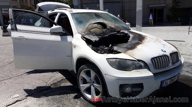 Taksim Meydanı'nda park halindeki lüks araç yanarak kullanılmaz hale geldi. Bir turizm firmasında çalışan Halit Rağmancı saat 13.00 sıralarında aracını Taksim Meydanı'na park etti.Tam aracından ineceği sırada birden otomobil alev aldı. Aracın motor bölümünde başlayan yangın ön kaputu sarınca sürücü kendini yere atarak itfaiyeden yardım istedi.Kısa sürede olay yerine gelen itfaiye yangını söndürdü. Tüm motor bölümü yanan araçta büyük miktarda maddi hasar meydana geldi. Lüks cipin şoförü Halit Rağmancı "Aracımı park edecektim. O sırada aracın motor bölümünden dumanlar çıkmaya başladı. Hemen kendimi dışarı attım. Vatandaşlar yardım etti. İtfaiye geldi. Yangını söndürdü.Yangın aracın elektrik aksamından veya klimadan çıkmış olabilir" dedi.Polis, yangınla ilgili inceleme başlattı.