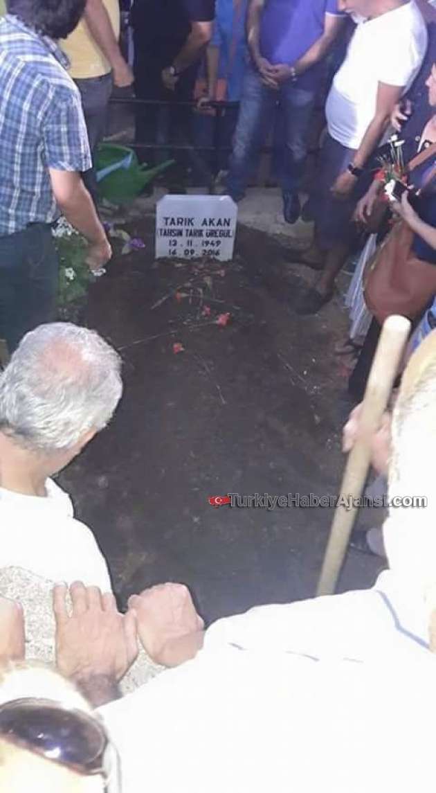 “Türkiye seninle gurur duyuyor”, “Türkiye laiktir laik kalacak” sloganları atan vatandaşlar, Akan’ın cenazesinin üstüne karanfiller attı. Akan’ın cenazesi Zuhurat Baba Mezarlığı’na getirildi. Defin sırasında perde çekilerek görüntü alınması engellendi. Defin işleminin ardından Bakırköy Cumhuriyet Meydanı’nda anma etkinliği başladı.YEŞİLÇAM TARIK AKAN’IN ARDINDAN GÖZYAŞI DÖKTÜTarık Akan’ın cenazesi başında Yeşilçam’ın ünlü isimleri saf tuttu. Kadir İnanır tabutun yanına zorlukla ulaştı. Tarık Akan’ın rol arkadaşları Emel Sayın, Türkan Şoray, Fatma Girik de son yolculuğunda ünlü yıldızı gözyaşları ile uğurladı.