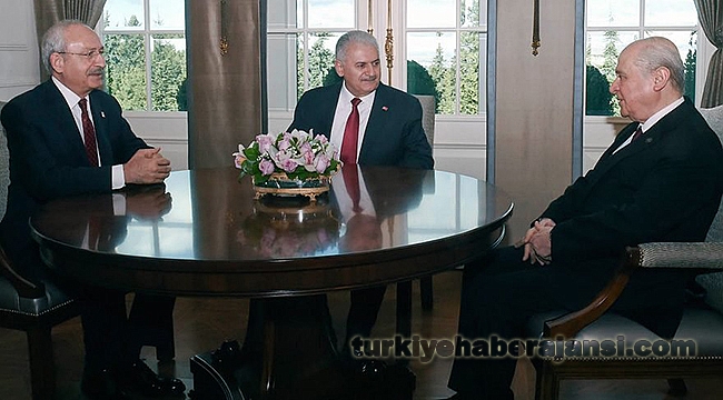 TBMM Başkanı İsmail Kahraman, Başbakan ve AKP Grup Başkanı Binali Yıldırım, CHP Genel Başkanı Kemal Kılıçdaroğlu ve MHP Genel Başkanı Devlet Bahçeli ile Meclis’te bir araya geldi.BAŞBAKAN TEŞEKKÜR ETTİBaşbakan Binali Yıldırım, CHP Genel Başkanı Kemal Kılıçdaroğlu ve MHP Genel Başkanı Bahçeli’ye tezkereye desteklerinden ötürü teşekkür etti.Devlet Bahçeli, “Meclis Başkanı’nın çayını içtiklerini” söyledi.