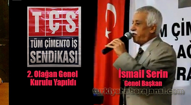 ‘SEKTÖRÜMÜZÜN UMUDU OLDUK…’Sendikaların; işçilerin ya da işverenlerin iş, kazanç, toplumsal ve kültürel konular yönünden çıkarlarını korumak, yeni haklar sağlamak ve onları daha da geliştirmek amacıyla, yasalar uyarınca kurulduğuna dikkat çeken Tüm Çimento İş Sendikası Genel Başkanı İsmail Serin, “Biz; Çimento Seramik Toprak ve Cam sanayi sektörünün umudu olduk… Yeni yönetimimiz de bu davaya gönül verenlerden oluştu.Bu vesileyle, Sendikamızın, gerçekleştirdiğimiz 2. Olağan Kongremize, demokrasi şölenimize renk katan, coşkumuza coşku katan, değerli misafirlerimize, tüm üyelerimize, olağan genel kurul kongre delegasyonuna şükranlarımı sunarken 2. Olağan Genel Kurulumuzun sendikamıza, üyelerimize, Tüm Çimento Seramik Toprak ve Cam sanayi emekçilerine, çalışma hayatımıza, aziz milletimize hayırlar getirmesini temenni ediyorum.” Dedi…Genel Kurulda güven tazeleyen Tüm Çimento İş Sendikası (TÇS) Genel Başkanı İsmail Serin, başkanlığındaki liste seçildi. Tüm Çimento İş Sendikası Genel Sekreterliği görevini ise Telat Kaya üstlendi… Listede bir önceki yönetiminden değişiklere giden Genel Başkan İsmail Serin, kadrodaki değişikliğin taze kan olduğunu belirterek önceki dönemlerde görev yapan yönetim kurulu üyelerine de çok teşekkür etti…Tüm Çimento İş Sendikası (TÇS) Genel Merkez yeni Yönetim Kurulu ve Görev Dağılımı şöyle:Tüm Çimento İş Sendikası Genel Başkanı İsmail Serin.
