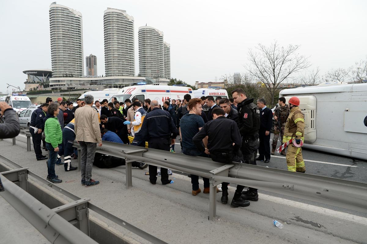 TEM otoyolu İSTOÇ mevkii Edirne istikametinde saat 08.00 sıralarında meydana gelen kaza iddialara göre şöyle oldu: Otoyolda seyir halinde bulunan İstanbul Çevik Kuvvet Şube Müdürlüğü’ne bağlı 34 UR 0163 plakalı minibüs henüz belirlenemeyen bir nedenle yan yattı. Kazada minibüste bulunan 6 polis yaralandı.Yaralı polislere ilk müdahaleyi çevredeki vatandaşlar ve olay yerine sevk edilen meslektaşları yaptı.Yaralı polisler, sağlık ekiplerinin olay yerinde yaptığı ilk müdahalenin ardından çevredeki hastanelere kaldırıldı.Kaza nedeniyle TEM otoyolu Edirne istikametinde trafik bir süre durdu.Kazaya karışan minibüsün çekici yardımıyla olay yerinden kaldırılmasının ardından trafik normale döndü.