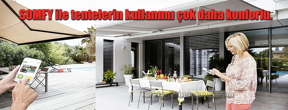 Yazın tentenizin altında sofraya oturacağınız, kahvenizi içeceğiniz, akşamları aileniz ve arkadaşlarınızla dinleneceğiniz günler dolu dolu geçiyor. Bu yüzden yazlığınızın ya da evinizin bahçesindeki tentenizle bu güzel günlerin tadını çıkarın. Üstelik ev otomasyon sistemlerinin dünyaca ünlü markası somfy ile tentelerin kullanımı çok daha konforlu. Teknoloji ile tanışan bahçe, teras, çardak ve verandalar gerçek anlamda hayat dolu… Somfy, motorlu tente sistemleriyle yerinizden kalkmadan, yalnızca uzaktan kumandanıza bir dokunuşla tentenizi istediğiniz gibi yukarı ve aşağı hareket ettirme imkanı sağlıyor. Pratik olduğu kadar estetik bir görünüme de sahip olan Somfy uzaktan kumandalar, “my” fonksiyonu sayesinde tek bir tuşa basarak daha önce kaydettiğiniz favori konuma geçmenizi olanaklı hale getiriyor. Öte yandan güneşli günlerde devreye giren güneş sensörü, optimum bir sıcaklık sağlamak için otomatik şekilde tentenizi açıyor. Böylece evinizin içini, mobilyalarınızı ya da bahçedeki çiçeklerinizi direkt güneş ışınlarından ve sıcaklıktan koruyor. Aşırı rüzgarlı günlerde ise rüzgar sensörü devreye giriyor. Siz orada bulunmasanız bile kumaş ve mekanizmayı korumak için otomatik olarak tentenizi topluyor. Ayrıca Somfy’nin Connexoon uygulaması ile tenteler, tablet ve cep telefonu gibi akıllı cihazlardan da tek dokunuşla kumanda edilebilir hale geliyor. Böylece siz yazlığınızda ya da evinizde değilken bile tenteniz açılıp kapatılabiliyor, o anki durumu kontrol edilebiliyor. Dilerseniz oluşturacağınız senaryolarla tenteniz seçtiğiniz konuma gelirken ışıklar da aynı anda açılabiliyor. Böylece bahçe veya terasınızda istediğiniz ortam hazır hale geliyor.Her model tenteye kolaylıkla monte edilebilen Somfy çözümleri, rahatınızdan ödün vermeden tentenizi kullanmanıza yardımcı oluyor. Somfy’nin uzaktan kumanda sayesinde tek bir tıklamayla tentelerinizi kontrol etme olanağı sunan radyo teknolojisi, kumanda ünitesi ve motorlar arasında kablo bulunmaksızın güvenilir montaj imkanı da sunuyor. Somfy ürünleri Avrupa Güvenlik Standartları’na uygun olarak üretiliyor. Zorlu iklim koşullarında binlerce kullanım periyodu gerçekleştirecek şekilde tasarlanıyor ve test ediliyor.