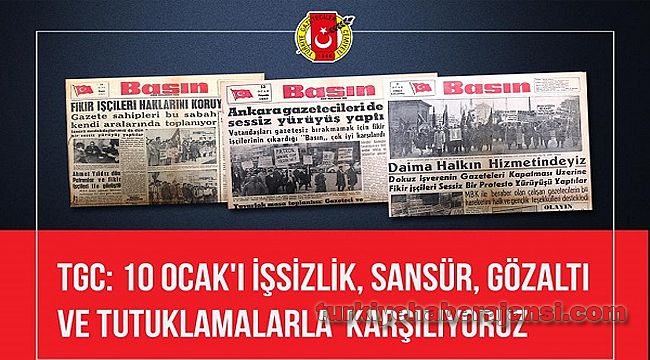 TGC: “10 Ocak Çalışan Gazeteciler Günü’nde bu yıl da demokratikleşme, çok seslilik, basın ve düşünceyi ifade özgürlüğünden söz edemiyoruz. Basın Kanunu’nun çıkarılması için verilen mücadele sonucu 1961’de gazeteciler için önce ‘bayram’ olarak ilân edilen, 1971’de ise basına uygulanan baskı nedeniyle adı ‘Çalışan Gazeteciler Günü’ olarak değiştirilen 10 Ocak’ta sansür, işsizlik, düşük ücret, sosyal güvencesizlik, sendikasızlık, gözaltı ve tutuklama gündemin ilk maddelerini oluşturuyor."
