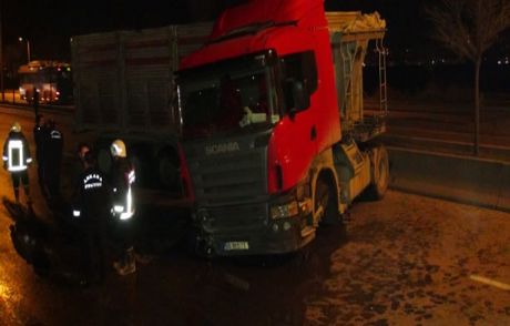 Bariyerlere çarpan ve ortadan ikiye ayrılan TIR’ın sürücüsü aracını bırakıp kaçtı. Kaza sonrası TIR’ın makina yağı asfalta döküldü, parçaları da yol ortasına saçıldı.Kaza, dün saat 23.00 sıralarında, Ayaş Yolu Eryaman Kavşağı’nda bulunan alt geçidin girişinde meydana geldi. 06 PKY 49 plakalı TIR, henüz bilinmeyen bir sebeple kontrolden çıkıp bariyerlere çarptıktan sonra ikiye bölünerek durabildi. Kaza sonrası bölgeye polis ve itfaiye ekipleri sevk edildi.Olay yerinde araştırma yapan ekipler aracın sürücüsünü bulamadı. Kaza yapan TIR’ın makina yağları asfalta döküldü, motor ve benzin deposu parçaları da etrafa saçıldı. Oluşan kaygan zeminden dolayı yeni kaza ihtimaline karşı polis ekipleri kazanın meydana geldiği yol güzergâhını trafiğe kapattı.Görgü tanıklarından Ferhat Taşdelen olay anını şöyle anlattı: "15-20 dakika önce şurada oturuyorduk, arda arda 3 kere güm güm güm diye ses geldi. Ondan sonra buraya geldik ve burayı gördük. Arabayı oraya çektik bir bakalım dedik, burada baya büyük bir şey olmuş zaten.” Kaza sonrası olay yerinde inceleme yapan polis ekipleri, konuyla ilgili inceleme başlattı.