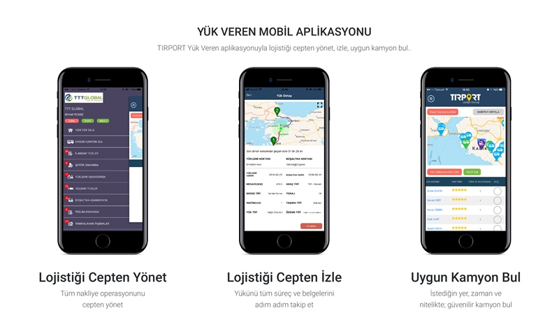 TIRPORT, lojistik operasyon yönetimi ve yük takibi konusunda dünya çapında dijital çözümler üretmektedir. TIRPORT’un geliştirdiği teknolojiler, araç takip sistemleriyle ya da araçlardaki OBD portlarla konuşabiliyor, mobil aplikasyonlarla taşımanın her evresi gerçek zamanlı ve konum tabanlı raporlanabiliyor. TIRPORT sayesinde, lojistik firmaları ve yük verenler, taşımayı cepten yönetirken; yüklerini ve teslimat süreçlerini canlı bir şekilde izlemektedirler.
