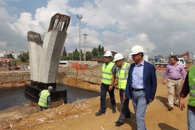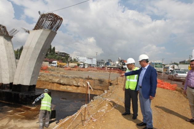 Gebze Belediyesi’nin önemli projeleri arasında yer alan ve Beylikbağı ile İstasyon’u birbirine bağlayacak olan Topçular Köprülü kavşağında incelemelerde bulunan Başkan Köşker, projenin Eylül ayında tamamlanarak hizmete girmesinin hedeflendiğini söyledi.ÇALIŞMALAR TAM GAZ!Topçular köprülü kavşağında çalışmalar tam gaz! Gebze Belediyesi tarafından yapımına başlana Topçular Köprülü kavşağı inşaatında çalışmalar tüm hızıyla devam ediyor. İhale ve Karayollarından ilgili izinlerin alınmasının ardından ilk kazmanın vurulduğu Topçular kavşağının köprü ayakları imalatında önemli aşamalar kaydedildi. Çalışmaları yakından takip eden Gebze Belediye Başkanı Adnan Köşker, inşaat alanında incelemelerde bulundu.İKİ YAKAYI BAĞLAYACAKMüteahhit firma yetkililerinden çalışmalar hakkında bilgi alan Başkan Köşker, projenin detayları hakkında da ilgili talimatlarını inşaat alanında verdi. Topçular Köprülü kavşağı projesinin iki yakayı, Beylikbağı ile İstasyon mahallesini birbirine bağlayacak önemli bir çalışma olduğunu vurgulayan Başkan Köşker, “Hava muhalefetine rağmen projemizde çalışmalar tüm hızıyla devam ediyor. Proje kapsamında d-100’ü üste alıyoruz. Altta ise iki yakayı birbirine bağlıyoruz.YAN YOLLAR TEK YÖNKuzey ve güney yan yollarda trafiği tek yönlü vererek akış hızı daha da rahatlayacak. Gebzeli hemşerilerimize çalışmalarımız boyunca gösterdiği teveccühten ötürü teşekkür ediyorum. Eylül ayında bitirerek hizmete açmayı hedeflediğimiz projemizde emeği geçen tüm çalışanlarımıza da gayretlerinden ötürü teşekkür ediyorum. Kolaylıklar diliyorum. Hayırlı olsun” dedi.