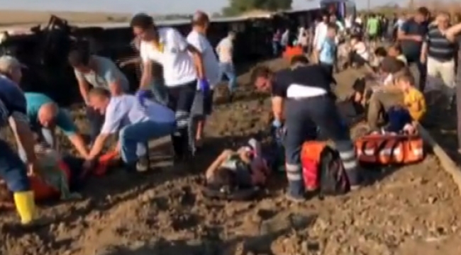 MORG ÖNÜNDE ACI BEKLEYİŞ SÜRÜYORAcılı ailelerin bekleyişleri sabahın ilk ışıklarına kadar sürdü. Bazı kazazedelerin yakınlarının feryatları ise yürekleri dağladı.Bu arada olay sonrası araçların ulaşamadığı kaza bölgesindeki yaralıların askeri helikopterle hastaneye getirilme anı da görüntülendi.5 VAGONU DEVRİLDİ, 24 KİŞİ YAŞAMINI YİTİRDİEdirne Uzunköprü ile İstanbul Halkalı arasında 362 yolcu ve 6 personel ile sefer yapan trenin 5 vagonu Tekirdağ’da devrildi. Başbakan Yardımcısı Recep Akdağ kazada 24 kişinin hayatını kaybettiğini açıkladı. Sağlık Bakanı 338 kişinin yaralandığını belirtti. Ulaştırma, Denizcilik ve Haberleşme Bakanlığı, tren kazasının aşırı yağış nedeniyle menfez ile ray arasındaki toprağın boşalması sonucu meydana geldiğini açıkladı. RTÜK, Başbakanlık yazısı ile Tekirdağ'da meydana gelen tren kazasıyla ilgili alınan geçici yayın yasağının kaldırıldığını bildirdi.124 YARALI TEDAVİ ALTINDASağlık Bakanı Ahmet Demircan ise kazadan sonra 338 kişinin hastanelere getirildiğini, bunlardan 194'ünün ayakta tedavi gördükten sonra taburcu edildiğini belirtti. Bakan Demircan, halen 124 hastanın müşahede ve tedavi altında bulunduğunu söyledi.