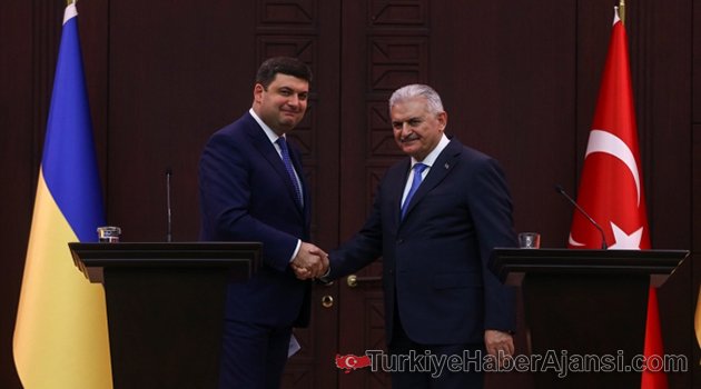 Türkiye ve Ukrayna kimlikle seyahat anlaşmasını imzaladı. İki ülkenin başbakanları ortak görüşme sonrası kameraların karşısına geçti. Başbakan Yıldırım, burada yaptığı açıklamada, iki ülke arasında vize muhafiyeti anlaşması imzalandığını ve ülke vatandaşlarının artık sadece kimlikle seyahet edeceklerini dile getirdi.KIRIM TATARLARINA DESTEK SÖZÜBaşbakan, "Bakanlarımızın karşılıklı görüşmeleri devam edecek.Kırım Tatarlarının sorunlarının giderilmesi için Ukrayna hükümetiyle yakın çalışmaya devam edeceğiz. 15 Temmuz Darbe girişiminde Ukrayna Türkiye'ye açıkca desteğini ortaya koymuştur. Yarın bir iş formu gerçekleştirilecek. Bizim bugünlerde bir halk oylamamız var. Yarın Anadolu'da iki ilimize ziyaretim var. Dolayısıyla bu programa katılamayacağım. Sayın Başbakan'a yardımcım Mehmet Şimşek eşlik edecek.Bugün gerek ikili gerek NATO ile olan işbirliğimizin geliştiğini bir kez daha teyid ettik. Ukrayna ile turist durumumuz iyiye gidiyor.Yeni vize rejimi ile geliş gidişler artacaktır. Bilim ve eğitim alanında karşılıklı ilişkileri geliştirecek bir anlaşma imzaladık." ifadelerini kullandı.GROYSMAN:TİCARETİ KARŞILIKLI ARTIRACAĞIZUkrayna Başbakanı Groysman ise şöyle konuştu:"Bu ziyaret, Türkiye-Ukrayna ilişkilerinin başlangıcının 25'inci yılında gerçekleşiyor. Bu ziyarette yaptığımız anlaşmalar, vatandaşlarımızın karşılıklı seyahatlerine kolaylaştırmaya yöneliktir. Bölgesel havaalanlarından karşılıklı uçuşlar olacak. Serbest ticaret anlaşması, ticareti karşılıklı artıracak"