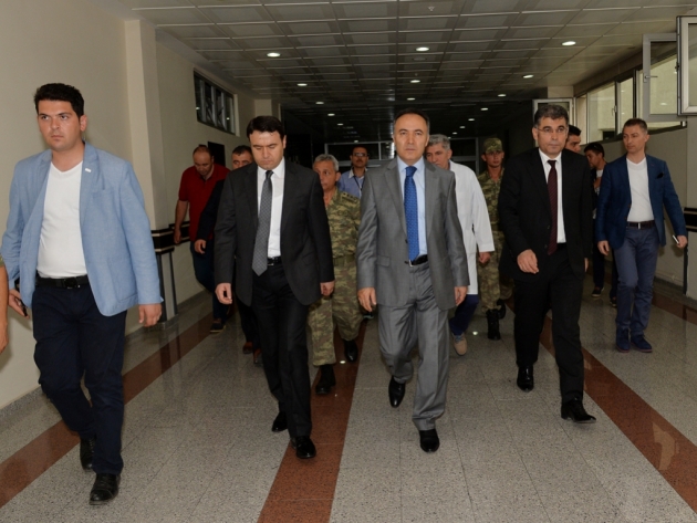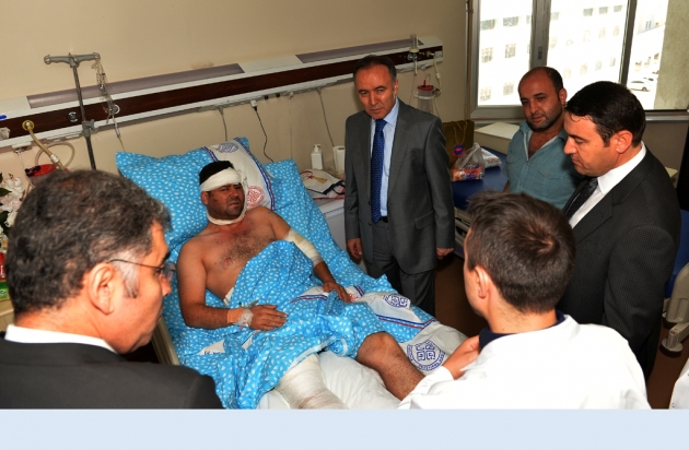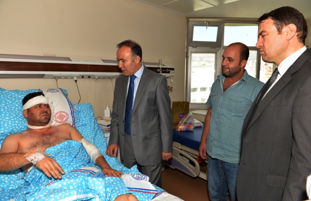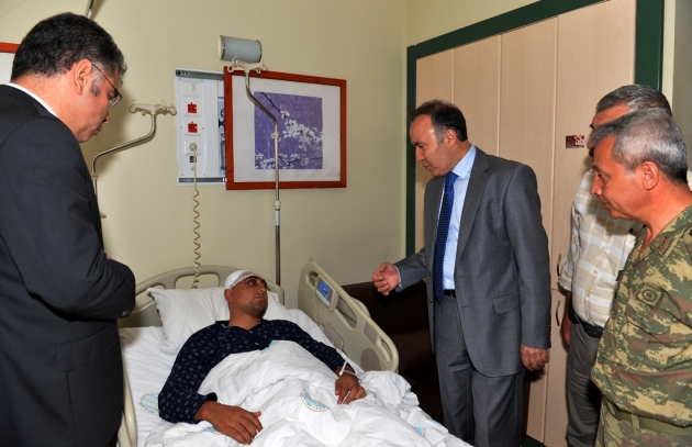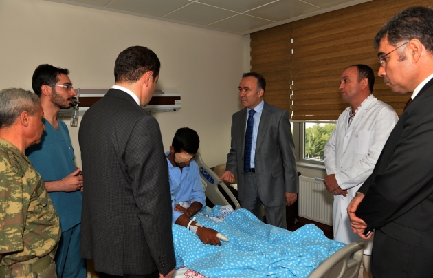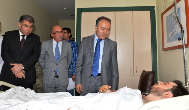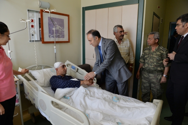 Vali Dr. Ahmet Altıparmak beraberinde Ağrı Valisi Musa Işın, yeni görevine atanan İl Jandarma Komutanı Albay Mustafa Çelik ve Emniyet Müdürü Kamil Karabörk ile birlikte PKK'nın hain saldırılarında yaralanan Asker ve Polislerimizi Ziyaret etti.